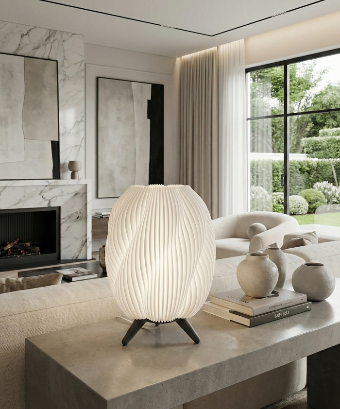 A Silhouette of Serenity Drawing from the sacred geometry found in nature and the architectural fluidity of the East, the YZ Sadaf features a hypnotic, pleated facade. Its spiraling ribs evoke the protective elegance of a rare seashell, protecting the Nur (light) within. Every curve is intentional, designed to diffuse light into a soft, ethereal glow that transforms the mood of any room—from the executive suite to the private sanctuary.